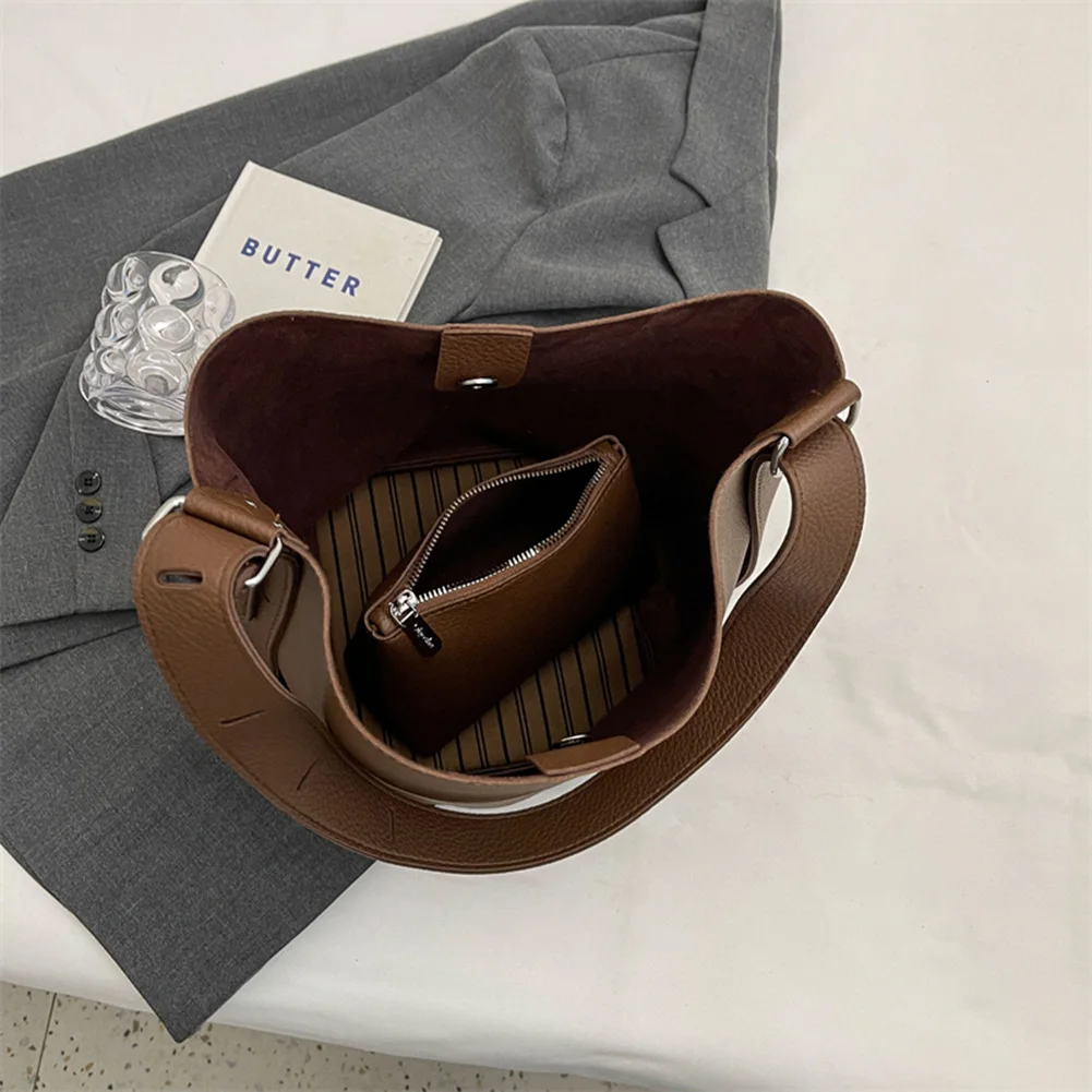 2. Spacious: With its ample capacity, this vintage bucket bag effortlessly accommodates your phone, keys, wallet, umbrella, cosmetics, and other small accessories. The well-designed compartments provide organized storage, making it convenient to carry all your essentials.