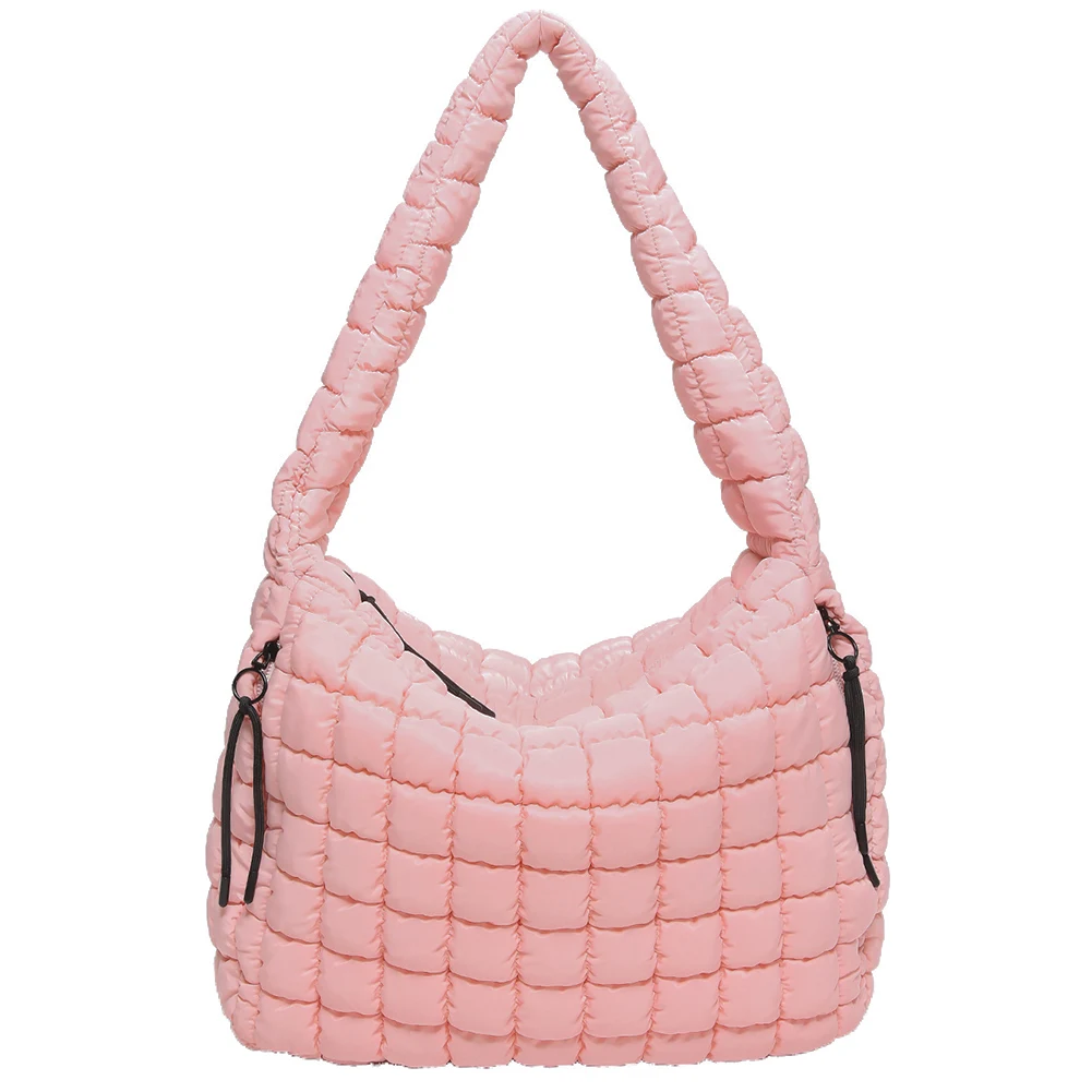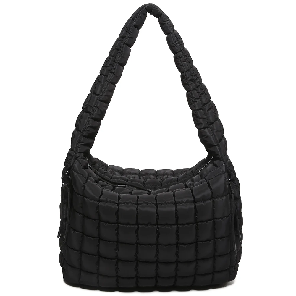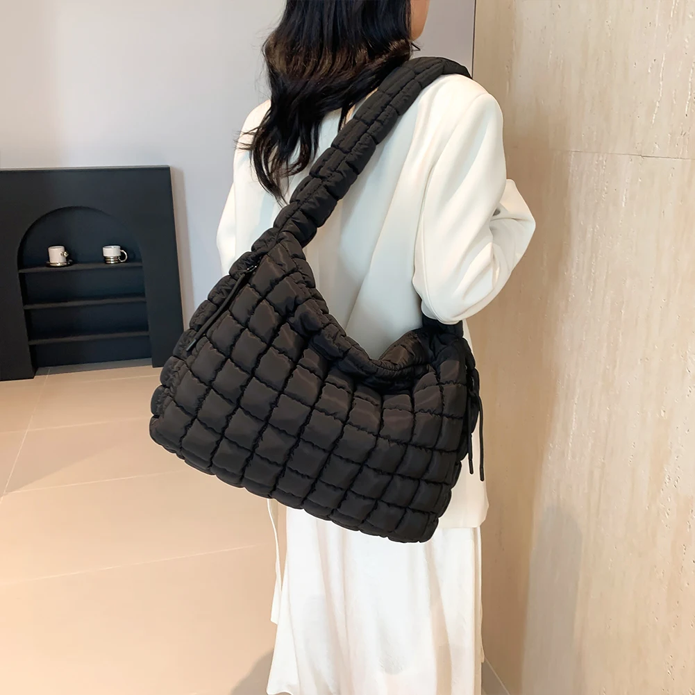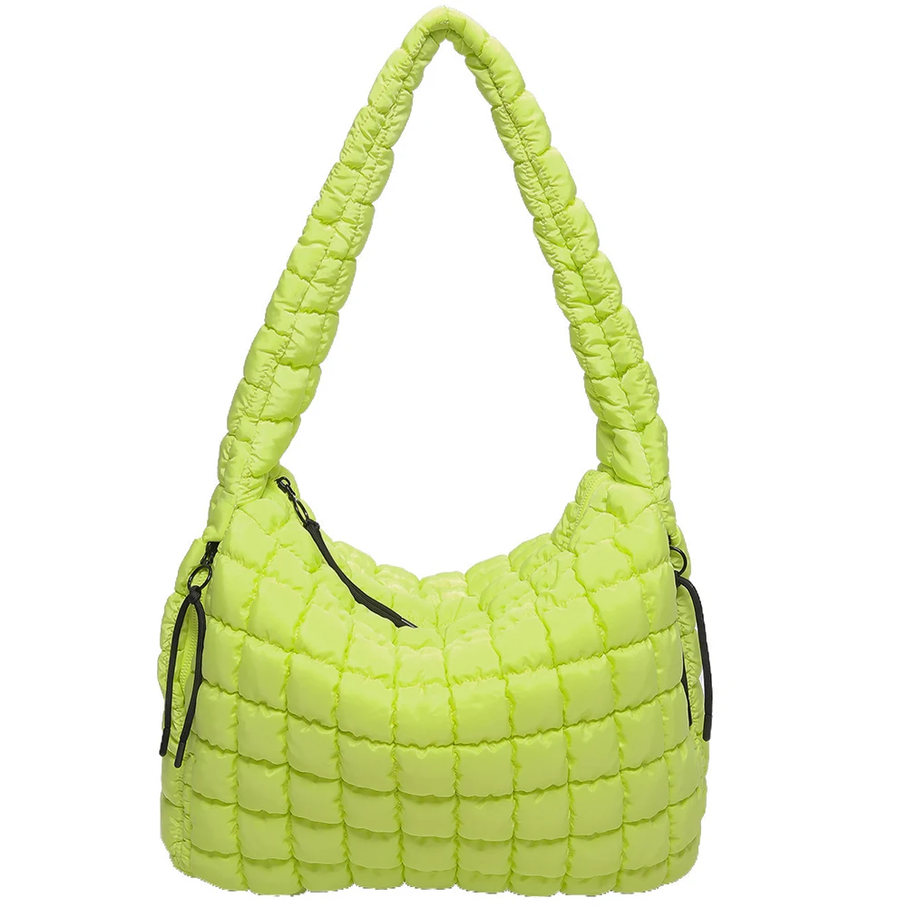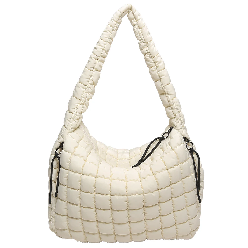 Women Puffer Shoulder Bag Padding Hobo Bag Large Capacity Puffy Shoulder Bag Solid Color Zip Closure for Outdoor Travel