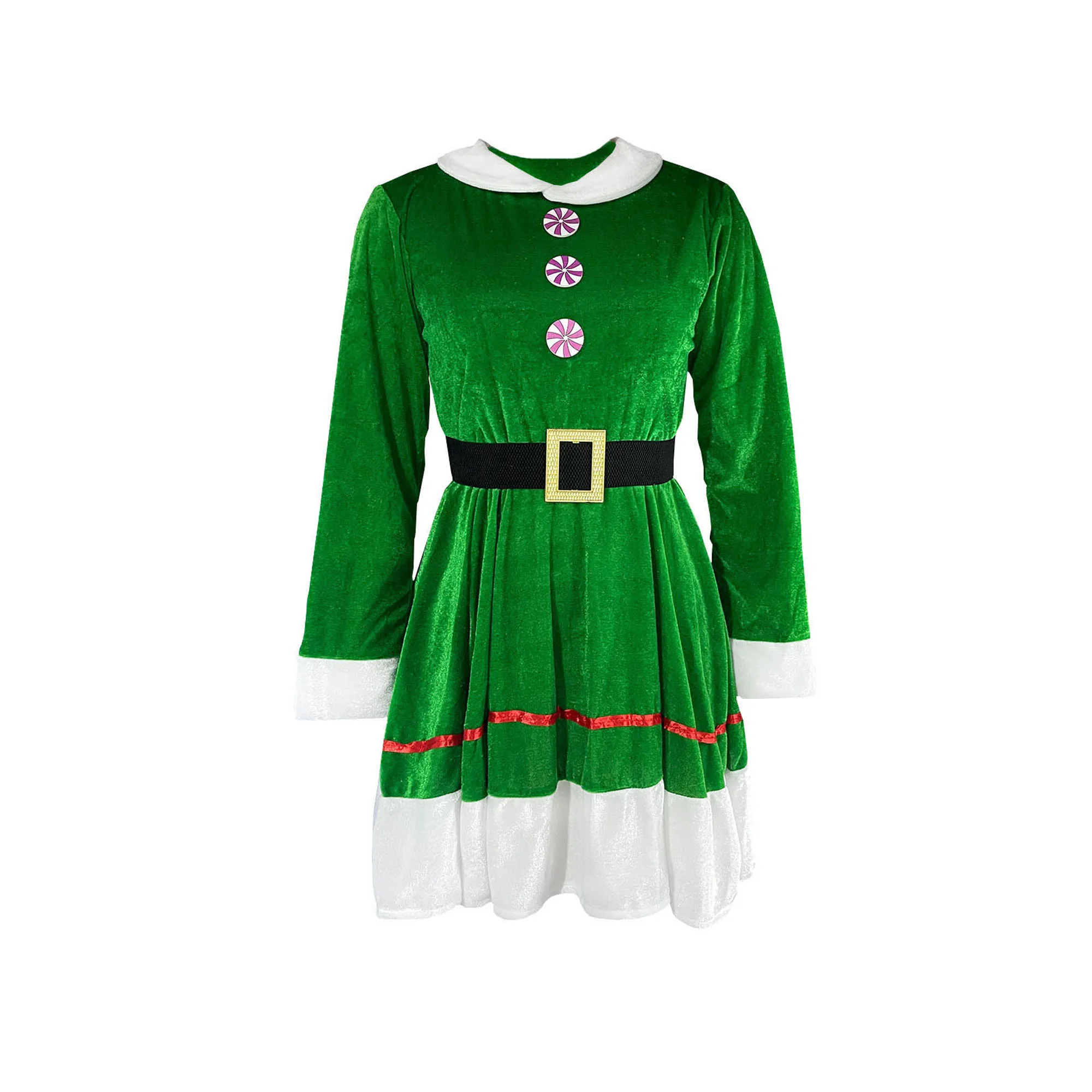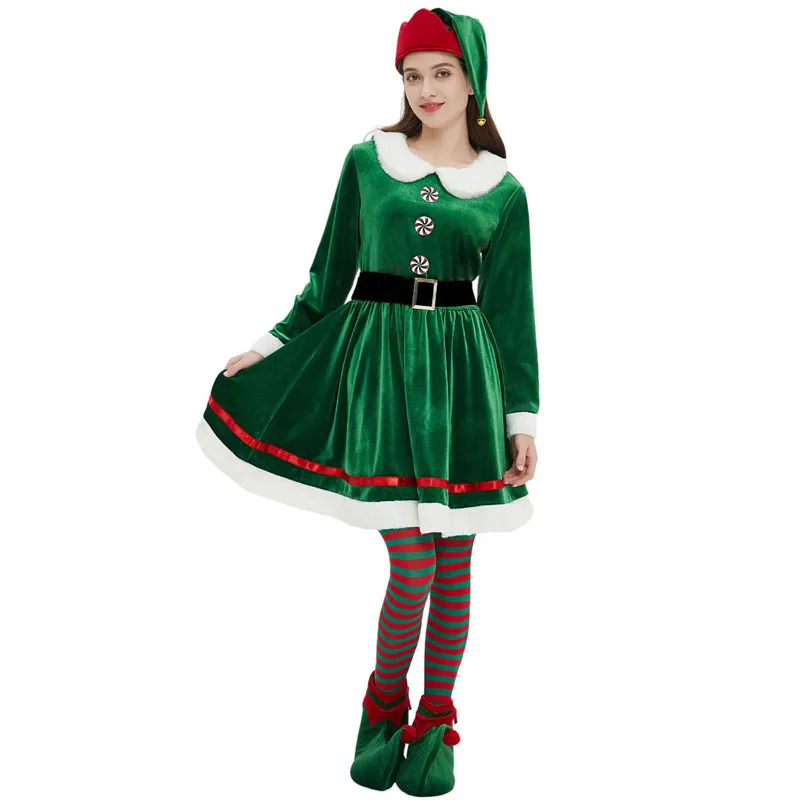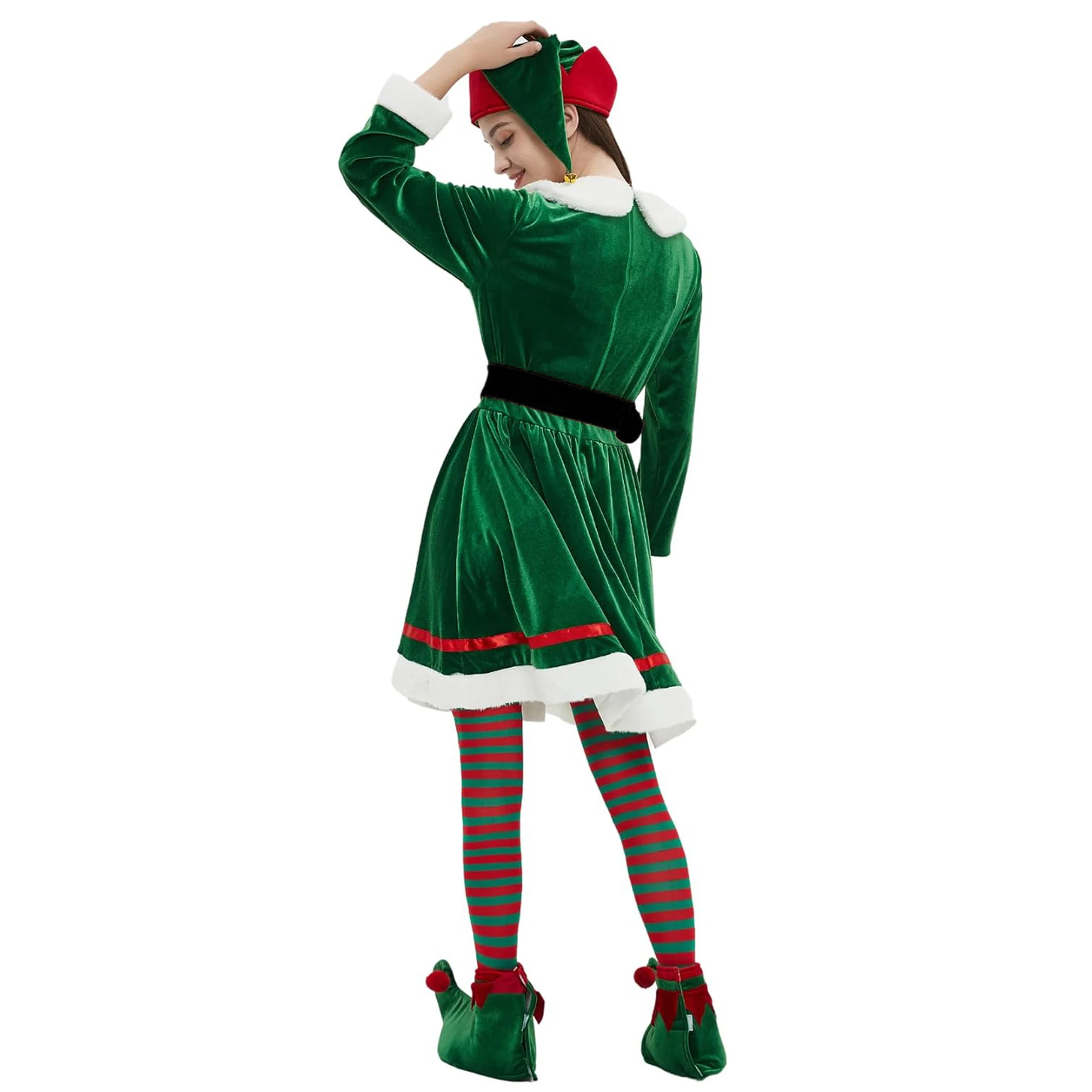 Women s Christmas Elf Costume Set with Dress Belt Hat Shoe Covers and Socks - Perfect for Cosplay and Role-Playing Parties