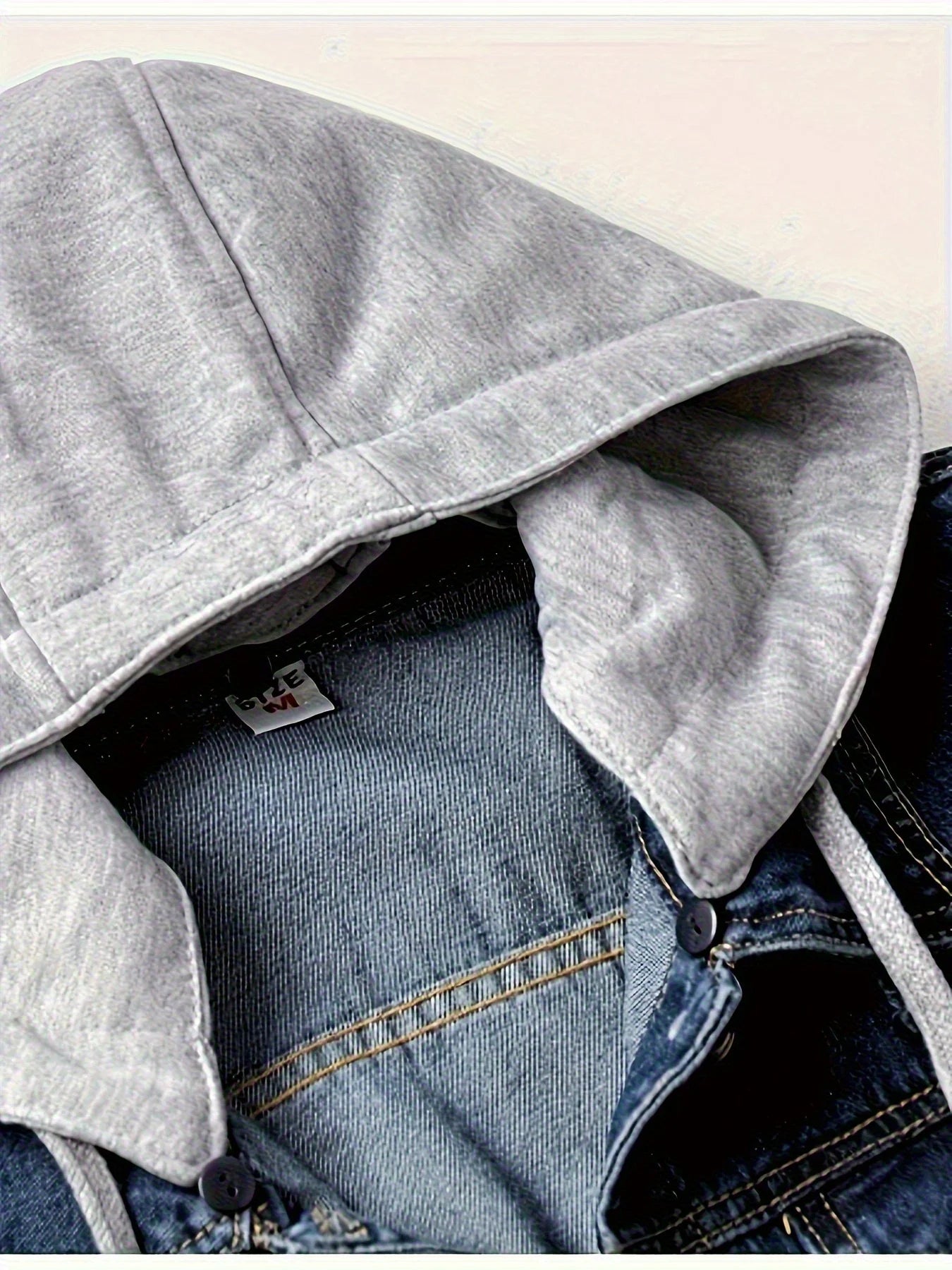 Detachable Hood Design: A creative combination of a hood and a denim jacket, with the hood being detachable, offering both classic and casual styles.